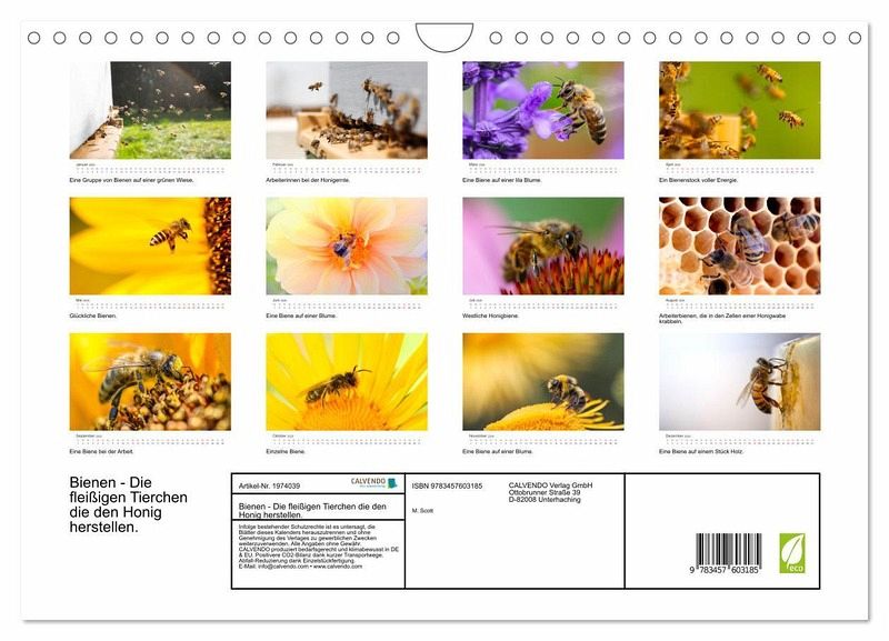 QUALITÄT - Hochwertiger Fotokalender mit 12 wunderschönen Motiven auf lichtbeständigem Bilderdruckpapier, robuste Spiralbindung mit Aufhängebügel.NACHHALTIG - deutliche Abfallreduzierung durch bedarfsgerechte Einzelstückfertigung, umweltfreundliches FSC-zertifiziertes Papier, Produktion in Deutschland, klimabewusste Logistik.PERFEKTES GESCHENK - Kalender für Freunde und Familie, für Kinder und Erwachsene, jung und alt, zu Weihnachten, Geburtstag oder zwischendurch.VIELFALT - Bildkalender in verschiedenenFormaten, z.B. DIN A5, DIN A4, DIN A3 sowie DIN A2. Ob Naturmotiv, Gemälde oder Fotos, ideal für ein persönliches Wohlfühlambiente.Erleben Sie einen Einblick die wunderbare Welt der Bienen. von Autor(in): Benjamin Lederer