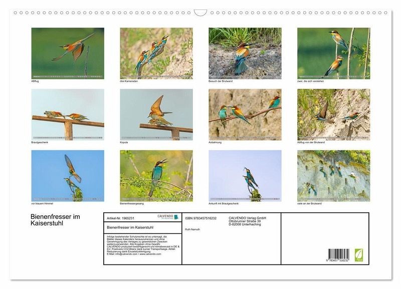 QUALITÄT - Hochwertiger Fotokalender mit 12 wunderschönen Motiven auf lichtbeständigem Bilderdruckpapier, robuste Spiralbindung mit Aufhängebügel.NACHHALTIG - deutliche Abfallreduzierung durch bedarfsgerechte Einzelstückfertigung, umweltfreundliches FSC-zertifiziertes Papier, Produktion in Deutschland, klimabewusste Logistik.PERFEKTES GESCHENK - Kalender für Freunde und Familie, für Kinder und Erwachsene, jung und alt, zu Weihnachten, Geburtstag oder zwischendurch.VIELFALT - Bildkalender in verschiedenen Formaten, z.B. DIN A5, DIN A4, DIN A3 sowie DIN A2. Ob Naturmotiv, Gemälde oder Fotos, ideal für ein persönliches Wohlfühlambiente.Bienenfresser im Kaiserstuhl von Autor(in): Runa