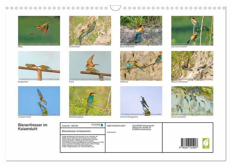 QUALITÄT - Hochwertiger Fotokalender mit 12 wunderschönen Motiven auf lichtbeständigem Bilderdruckpapier, robuste Spiralbindung mit Aufhängebügel.NACHHALTIG - deutliche Abfallreduzierung durch bedarfsgerechte Einzelstückfertigung, umweltfreundliches FSC-zertifiziertes Papier, Produktion in Deutschland, klimabewusste Logistik.PERFEKTES GESCHENK - Kalender für Freunde und Familie, für Kinder und Erwachsene, jung und alt, zu Weihnachten, Geburtstag oder zwischendurch.VIELFALT - Bildkalender in verschiedenen Formaten, z.B. DIN A5, DIN A4, DIN A3 sowie DIN A2. Ob Naturmotiv, Gemälde oder Fotos, ideal für ein persönliches Wohlfühlambiente.Bienenfresser im Kaiserstuhl von Autor(in): Runa