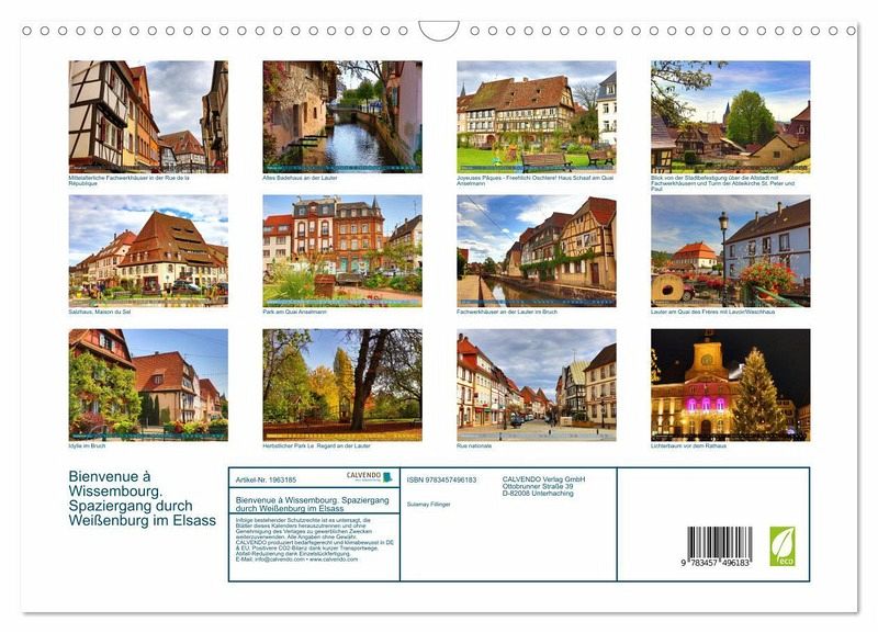QUALITÄT - Hochwertiger Fotokalender mit 12 wunderschönen Motiven auf lichtbeständigem Bilderdruckpapier, robuste Spiralbindung mit Aufhängebügel.NACHHALTIG - deutliche Abfallreduzierung durch bedarfsgerechteEinzelstückfertigung, umweltfreundliches FSC-zertifiziertes Papier, Produktion in Deutschland, klimabewusste Logistik.PERFEKTES GESCHENK - Kalender für Freunde und Familie, für Kinder und Erwachsene, jung und alt, zu Weihnachten, Geburtstag oder zwischendurch.VIELFALT - Bildkalender in verschiedenen Formaten, z.B. DIN A5, DIN A4, DIN A3 sowie DIN A2. Ob Naturmotiv, Gemälde oder Fotos, ideal für ein persönliches Wohlfühlambiente.Spaziergang durch Wissembourg / Weißenburg von Autor(in): Sulamay Fillinger Fotografie