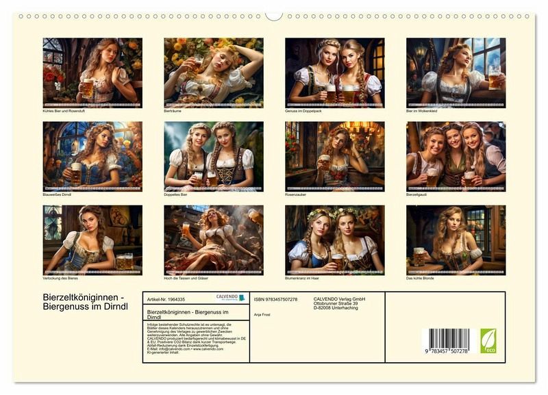 PREMIUM-LINIE - Brillanter Fotokalender mit 12 wunderschönen Motiven, Kunstdruck in Hochglanz in Museumsqualität.QUALITÄT - edle Materialien, stabile Rückwand mit 2 innovativen Einstecktaschen für eine optimale Präsentation an der Wand.NACHHALTIG - deutliche Abfallreduzierung durch bedarfsgerechte Einzelstückfertigung, umweltfreundliches FSC-zertifiziertes Papier, Produktion in Deutschland, klimabewusste Logistik.PERFEKTES GESCHENK - Kalender für Freunde und Familie, für Kinder und Erwachsene,jung und alt, zu Weihnachten, Geburtstag oder zwischendurch.Traditionelle Dirndl-Schönheiten im Bierzelt von Autor(in): Anja Frost