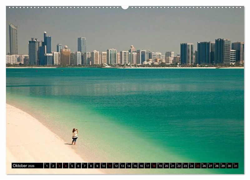 Oktober: Strand vor der Skyline von Abu Dhabi
