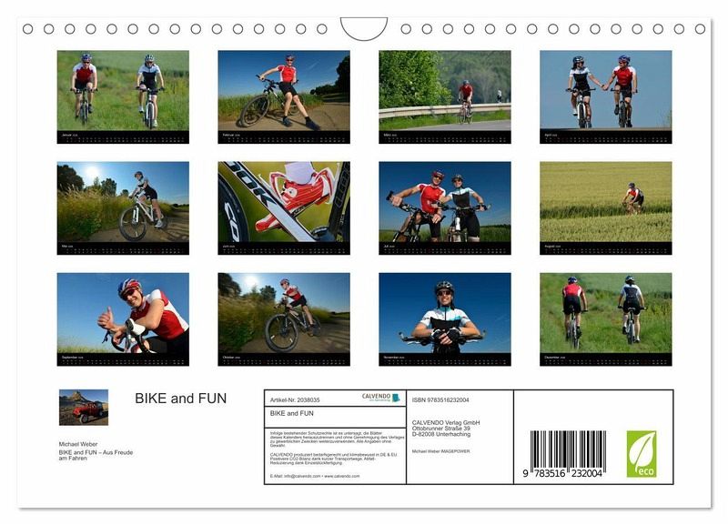 QUALITÄT - Hochwertiger Fotokalender mit 12 wunderschönen Motiven auf lichtbeständigem Bilderdruckpapier, robuste Spiralbindung mit Aufhängebügel.NACHHALTIG - deutliche Abfallreduzierung durch bedarfsgerechte Einzelstückfertigung, umweltfreundliches FSC-zertifiziertes Papier, Produktion in Deutschland, klimabewusste Logistik.PERFEKTES GESCHENK - Kalender für Freunde und Familie, für Kinder und Erwachsene, jung und alt, zu Weihnachten, Geburtstag oder zwischendurch.VIELFALT - Bildkalender in verschiedenen Formaten, z.B. DIN A5, DIN A4, DIN A3 sowie DIN A2. Ob Naturmotiv, Gemälde oder Fotos, ideal für ein persönliches Wohlfühlambiente.Aus Freude am Radfahren von Autor(in): Michael Weber
