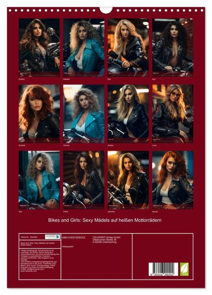 QUALITÄT - Hochwertiger Fotokalender mit 12 wunderschönen Motiven auf lichtbeständigem Bilderdruckpapier, robuste Spiralbindung mit Aufhängebügel.NACHHALTIG - deutliche Abfallreduzierung durch bedarfsgerechte Einzelstückfertigung, umweltfreundliches FSC-zertifiziertes Papier, Produktion in Deutschland, klimabewusste Logistik.PERFEKTES GESCHENK - Kalender für Freunde und Familie, für Kinder und Erwachsene, jung und alt, zu Weihnachten, Geburtstag oder zwischendurch.VIELFALT - Bildkalender in verschiedenen Formaten, z.B. DIN A5, DIN A4, DIN A3 sowie DIN A2. Ob Naturmotiv, Gemälde oder Fotos, ideal für ein persönliches Wohlfühlambiente.Monat für Monat verbindet Bikes and Girls die sinnliche Ausstrahlung charmanter Models mit der rasanten Welt glänzender Motorräder. Ein echter Hingucker für jede Wand. von Autor(in): Attila Arndt