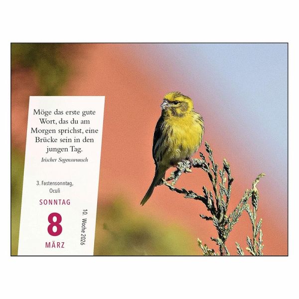 Bringen Sie Farbe in Ihr Leben und schenken Sie Ihrem Alltag neue Impulse: Mit diesem aufstellbaren Tageskalender starten Sie garantiert gut in den Tag. Er enthält 365 ausdrucksstarke Naturfotografien, die ein positives Lebensgefühl verbreiten.Begleitet werden die stimmungsvollen Motive von ermutigenden Zitaten beliebter Autoren wie Khalil Gibran, Mutter Teresa, Dietrich Bonhoeffer, Rainer Maria Rilke oder aus der Bibel.- 365 faszinierende Naturaufnahmen- positive Impulse für jeden Tag- lesefreundliche Schrift