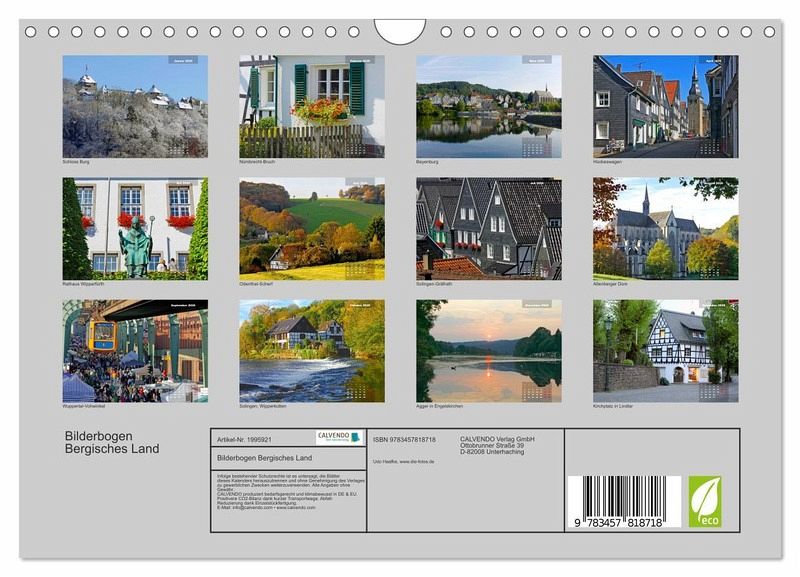 QUALITÄT - Hochwertiger Fotokalender mit 12 wunderschönen Motiven auf lichtbeständigem Bilderdruckpapier, robuste Spiralbindung mit Aufhängebügel.NACHHALTIG - deutliche Abfallreduzierung durch bedarfsgerechte Einzelstückfertigung, umweltfreundliches FSC-zertifiziertes Papier, Produktion in Deutschland, klimabewusste Logistik.PERFEKTES GESCHENK - Kalender für Freunde und Familie, für Kinder und Erwachsene, jung und alt, zu Weihnachten, Geburtstag oder zwischendurch.VIELFALT - Bildkalender in verschiedenen Formaten, z.B. DIN A5, DIN A4, DIN A3 sowie DIN A2. Ob Naturmotiv, Gemälde oder Fotos, ideal für ein persönliches Wohlfühlambiente.Fotografischer Streifzug durch das Bergische Land von Autor(in): Udo Haafke
