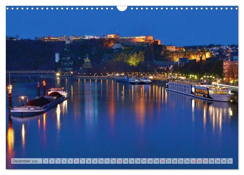 Januar: Das Koblenzer Altstadtufer im warmen Abendlicht.