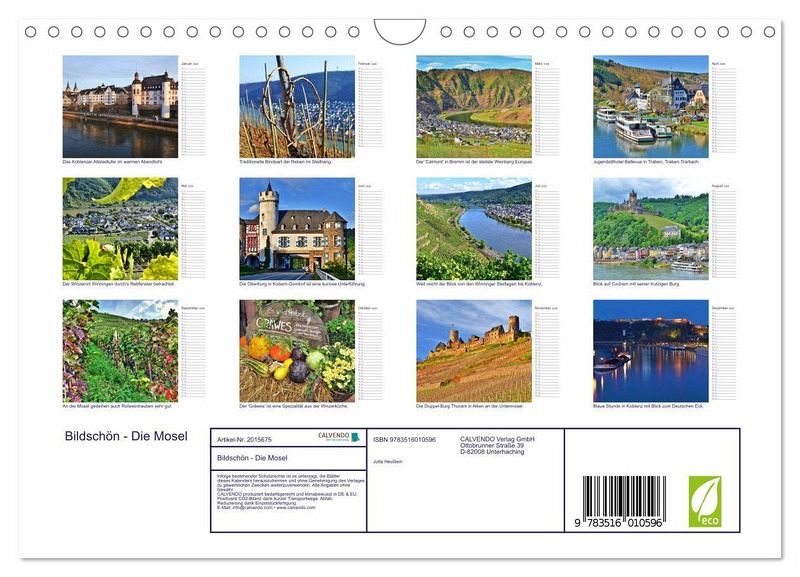 QUALITÄT - Hochwertiger Fotokalender mit 12 wunderschönen Motiven auf lichtbeständigem Bilderdruckpapier, robuste Spiralbindung mit Aufhängebügel.NACHHALTIG - deutliche Abfallreduzierung durch bedarfsgerechte Einzelstückfertigung, umweltfreundliches FSC-zertifiziertes Papier, Produktion in Deutschland, klimabewusste Logistik.PERFEKTES GESCHENK - Kalender für Freunde und Familie, für Kinder und Erwachsene, jung und alt, zu Weihnachten, Geburtstag oder zwischendurch.VIELFALT - Bildkalender in verschiedenen Formaten, z.B. DIN A5, DIN A4, DIN A3 sowie DIN A2. Ob Naturmotiv, Gemälde oder Fotos, ideal für ein persönliches Wohlfühlambiente.Die sonnige Terrassenmosel lädt ein von Autor(in): Maximilian Fuchs