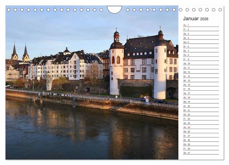 Januar: Das Koblenzer Altstadtufer im warmen Abendlicht.