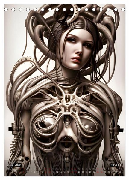 Erleben Sie die künstlerische Fusion von Mensch und Maschine mit diesem Kalender weiblicher biomechanischer Portraits. Eine Verbindung von Anmut und Ausdrucksstärke des Weiblichen mit der Ästhetik des Technologischen. Diese faszinierenden Bilder laden dazu ein, über die Verschmelzung von Organik und Mechanik nachzudenken und die Grenzen der künstlerischen Kreativität zu erforschen.