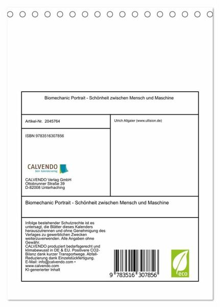 QUALITÄT - Hochwertiger Fotokalender mit 12 wunderschönen Motiven auf lichtbeständigem Bilderdruckpapier, robuste Spiralbindung.NACHHALTIG - deutliche Abfallreduzierung durch bedarfsgerechte Einzelstückfertigung, umweltfreundliches FSC-zertifiziertes Papier, Produktion in Deutschland, klimabewusste Logistik.PERFEKTES GESCHENK - Kalender für Freunde und Familie, für Kinder und Erwachsene, jung und alt, zu Weihnachten, Geburtstag oder zwischendurch.VIELFALT - Bildkalender in verschiedenen Formaten, z.B. DIN A5, DIN A4,DIN A3 sowie DIN A2. Ob Naturmotiv, Gemälde oder Fotos, ideal für ein persönliches Wohlfühlambiente.Elegante Maschinenwesen von Autor(in): ullision