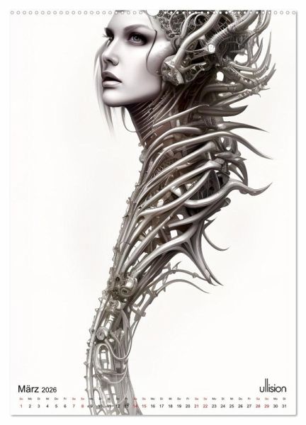 Erleben Sie die künstlerische Fusion von Mensch und Maschine mit diesem Kalender weiblicher biomechanischer Portraits. Eine Verbindung von Anmut und Ausdrucksstärke des Weiblichen mit der Ästhetik des Technologischen. Diese faszinierenden Bilder laden dazu ein, über die Verschmelzung von Organik und Mechanik nachzudenken und die Grenzen der künstlerischen Kreativität zu erforschen.