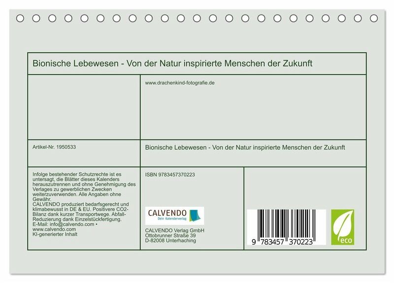 In einer Zukunft, in der Wissenschaft und Natur verschmelzen, könnten hybride Wesen entstehen, welche die besten Eigenschaften von Pflanzen, Tieren und Menschen vereinen. Diese bionischen Lebewesen könnten neue Wege zur Lösung globaler Herausforderungen bieten, von der Heilung von Krankheiten bis zur besseren Anpassung an die Umwelt. Dieser Ki drachenkind-fotografie Kalender zeigt 13 ästhetische Abbildungen von Hybriden, auch Chimären genannt, welche die harmonische Koexistenz von Natur und menschlichem Leben zeigen.