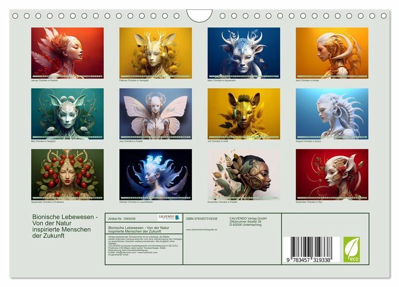 In einer Zukunft, in der Wissenschaft und Natur verschmelzen, könnten hybride Wesen entstehen, welche die besten Eigenschaften von Pflanzen, Tieren und Menschen vereinen. Diese bionischen Lebewesen könnten neue Wege zur Lösung globaler Herausforderungen bieten, von der Heilung von Krankheiten bis zur besseren Anpassung an die Umwelt. Dieser Ki drachenkind-fotografie Kalender zeigt 13 ästhetische Abbildungen von Hybriden, auch Chimären genannt, welche die harmonische Koexistenz von Natur und menschlichem Leben zeigen.