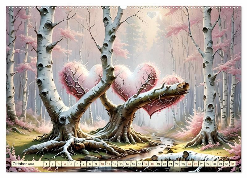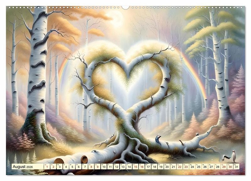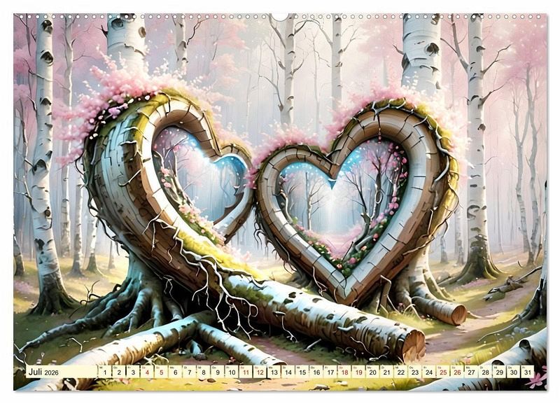 Entdecken Sie den einzigartigen Birkenwald Kalender, der dank künstlicher Intelligenz geschaffen wurde. Jedes Bild in diesem Kalender zeigt die beeindruckende Schönheit eines Birkenwaldes, in dem die Bäume zärtlich eine Herzform bilden. Erleben Sie die harmonische Verbindung von Natur und Liebe jeden Tag aufs Neue und lassen Sie sich von der Kraft dieses einzigartigen Kalenders verzaubern.