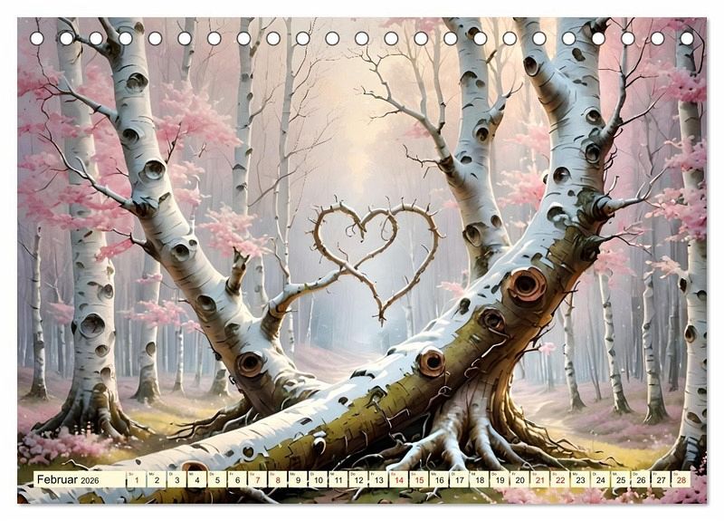 Entdecken Sie den einzigartigen Birkenwald Kalender, der dank künstlicher Intelligenz geschaffen wurde. Jedes Bild in diesem Kalender zeigt die beeindruckende Schönheit eines Birkenwaldes, in dem die Bäume zärtlich eine Herzform bilden. Erleben Sie die harmonische Verbindung von Natur und Liebe jeden Tag aufs Neue und lassen Sie sich von der Kraft dieses einzigartigen Kalenders verzaubern.