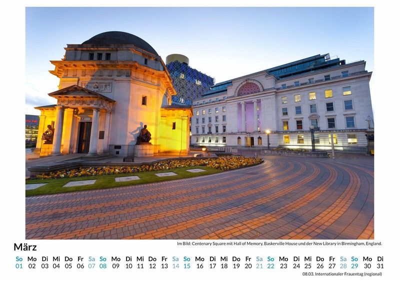Entdecken Sie die faszinierende Vielfalt Birminghams mit unserem hochwertigen Wandkalender! Lassen Sie sich Monat für Monat von 12 atemberaubenden Motiven dieser pulsierenden Stadt in England inspirieren - von historischen Wahrzeichen bis hin zu modernen Architekturen. Gedruckt auf lichtbeständigem Bilderdruckpapier, garantieren die brillanten Farben langanhaltende Freude. Nachhaltigkeit liegt uns am Herzen: Der Kalender wird in Deutschland auf FSC-zertifiziertem Papier produziert. Perfekt für Ihr Zuhause oder als Geschenk für England-Liebhaber - dieser Kalender bringt die einzigartige Atmosphäre Birminghams direkt an Ihre Wand. Sichern Sie sich jetzt Ihr Exemplar und genießen Sie das ganze Jahr über urbane Eleganz! Hochwertig Erleben Sie ein Jahr voller Eleganz mit unserem Premium-Fotokalender. Jedes der 12 Motive ist auf hochwertigem, lichtbeständigem Bilderdruckpapier gedruckt, um die Lebendigkeit jedes Bildes zu bewahren. Die robuste Spiralbindung gewährleistet Langlebigkeit und einfache Handhabung. Nachhaltig Unser Engagement für die Umwelt spiegelt sich in jedem Exemplar wider. Durch die Produktion auf Abruf reduzieren wir signifikant unseren Abfall. Wir verwenden ausschließlich umweltfreundliches, FSC-zertifiziertes Papier. Stolz gefertigt in Deutschland, achten wir bei unserer Logistik auf Klimaschutz, um unseren ökologischen Fußabdruck zu minimieren. Das ideale Geschenk Dieser Kalender ist das perfekte Präsent für jeden Anlass - ob Weihnachten, Geburtstage oder einfach als liebevolle Aufmerksamkeit zwischendurch. Geeignet für Freunde, Familie, Kinder und Erwachsene gleichermaßen, bereichert er jedes Zuhause mit seiner Vielfalt und Schönheit, unabhängig vom Alter der Beschenkten.