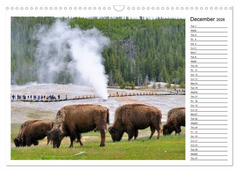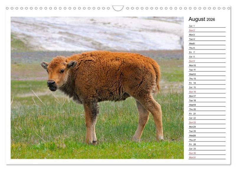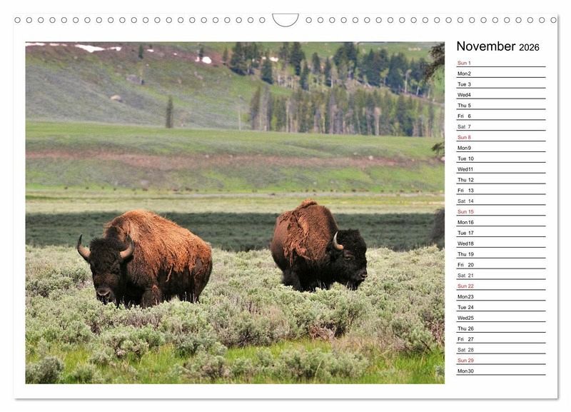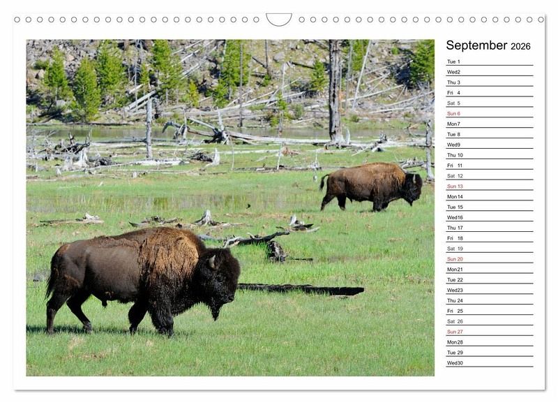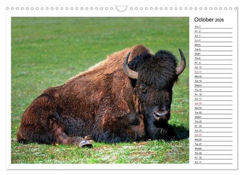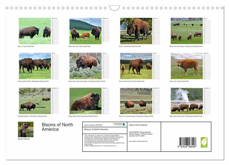 QUALITY - High-quality photo calendar with 12 beautiful images on light-resistant paper, robust spiral binding with hanger.SUSTAINABLE - Significant waste reduction due to print-on-demand production, environmentally friendly FSC-certified paper, produced in the UK, climate-conscious logistical processes.PERFECT GIFT - calendars for friends and family, for children, all ages and all occasions, from Christmas to birthdays and everything in between.LOTS OF CHOICE - Wall calendars in different sizes (DIN A4 and DIN A3), for any topic and personal taste, featuring photography, painting and illustrations.The Bison or Indian buffalo is the largest mammal on the North American continent. Through the protection of Yellowstone National Park today large herds are prowling again on the plains and prairies of the American West., author: Dieter Wilczek