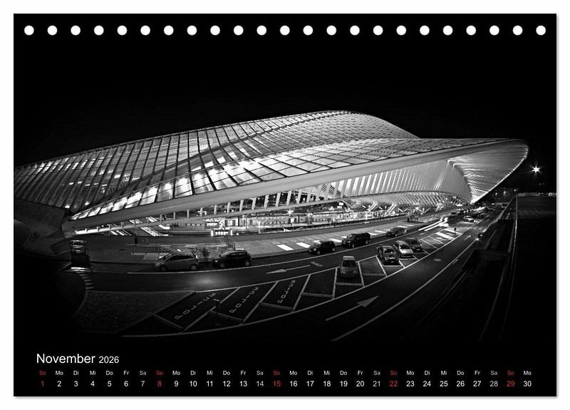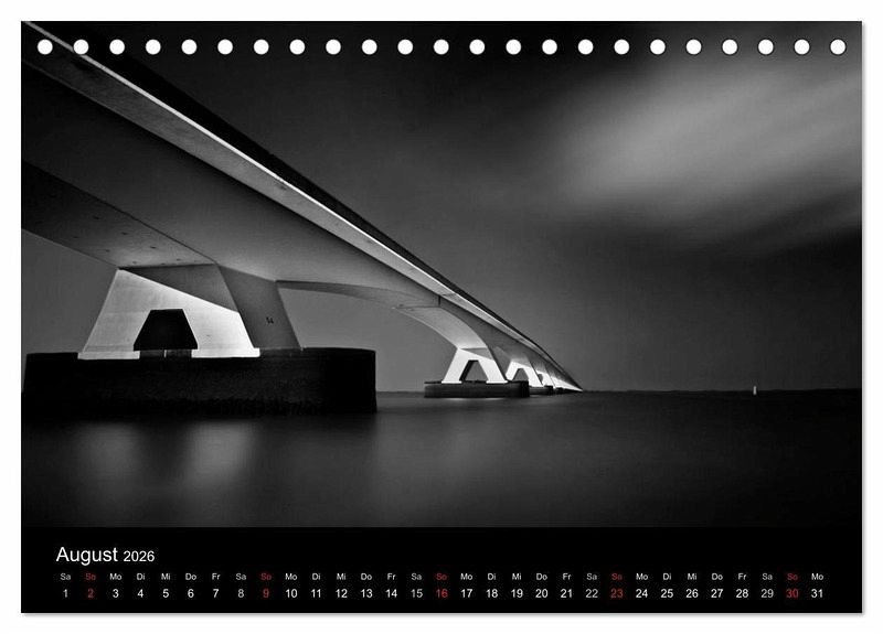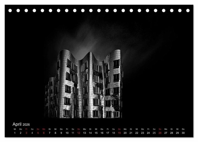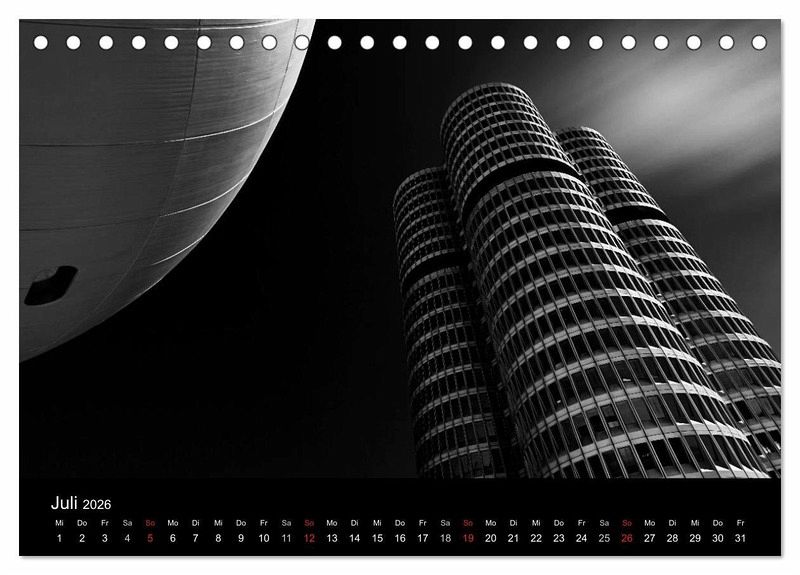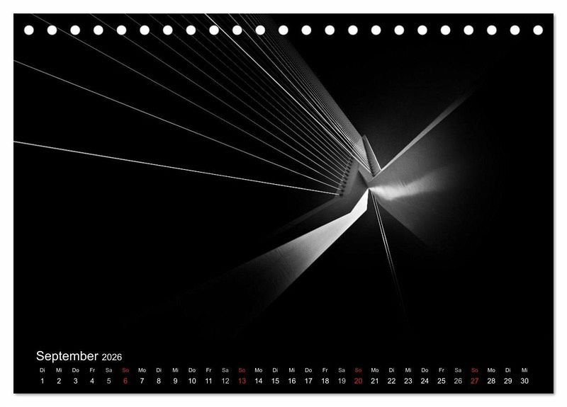 Die mehrfach preisgekrönten Fotos aus der Serie "Black-Schwarz-Noir" sind jetzt erstmals als Kalender erhältlich. Die Bilder zeigen bekannte Bauwerke der modernen Architektur auf neue Weise - strahlend treten sie aus tiefer Schwärze hervor.