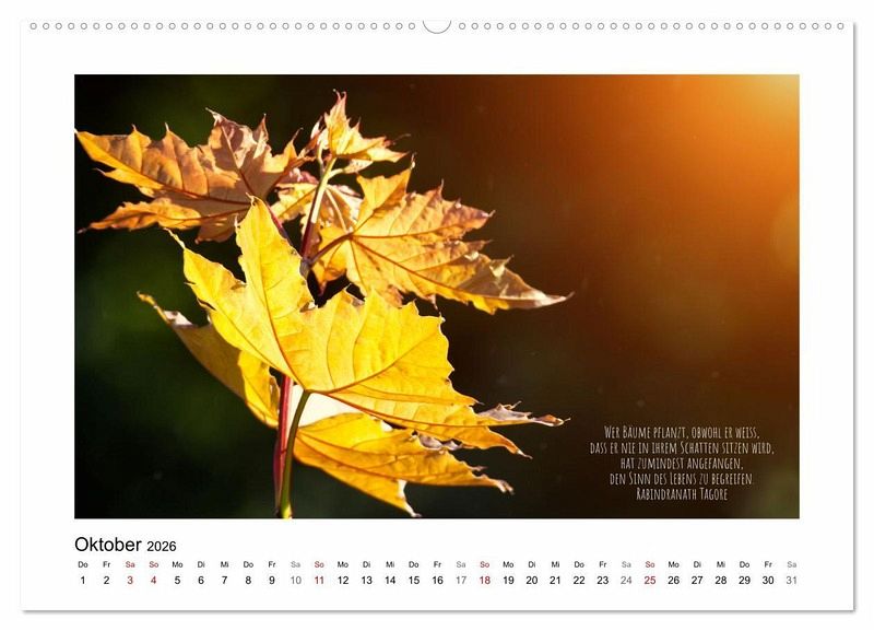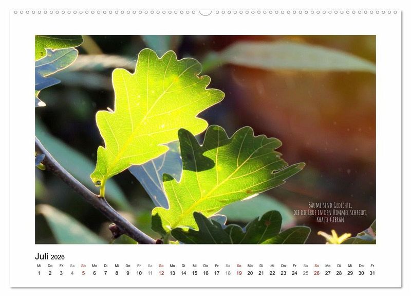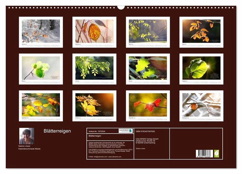 QUALITÄT - Hochwertiger Fotokalender mit 12 wunderschönen Motiven auf lichtbeständigem Bilderdruckpapier, robuste Spiralbindung mit Aufhängebügel.NACHHALTIG - deutliche Abfallreduzierung durch bedarfsgerechte Einzelstückfertigung, umweltfreundliches FSC-zertifiziertes Papier, Produktion in Deutschland, klimabewusste Logistik.PERFEKTES GESCHENK - Kalender für Freunde und Familie, für Kinder und Erwachsene, jung und alt, zu Weihnachten, Geburtstag oder zwischendurch.VIELFALT - Bildkalender in verschiedenen Formaten, z.B. DIN A5, DIN A4, DIN A3 sowie DIN A2. Ob Naturmotiv, Gemälde oder Fotos, ideal für ein persönliches Wohlfühlambiente.Ein Blatt, viele Blätter und immer ein Zitat von Autor(in): Sabine Löwer