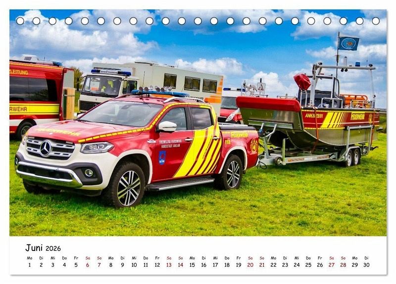 Juni: Einsatzfahrzeug Feuerwehr mit Boot