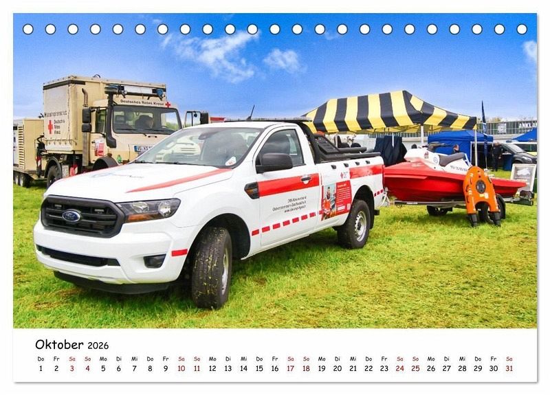 Oktober: Einsatzfahrzeug Rettungsdienst mit Boot