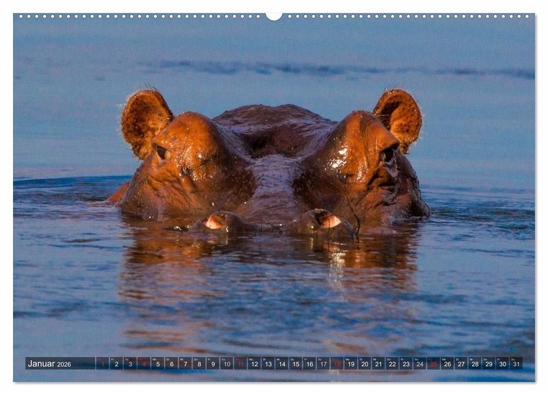 Januar: blick kontakt mit einem flusspferd im lower zambesi national park, sambia