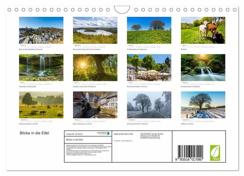 QUALITÄT - Hochwertiger Fotokalender mit 12 wunderschönen Motiven auf lichtbeständigem Bilderdruckpapier, robuste Spiralbindung mit Aufhängebügel.NACHHALTIG - deutliche Abfallreduzierung durch bedarfsgerechte Einzelstückfertigung, umweltfreundliches FSC-zertifiziertes Papier, Produktion in Deutschland, klimabewusste Logistik.PERFEKTES GESCHENK - Kalender für Freunde und Familie, für Kinder und Erwachsene, jung und alt, zu Weihnachten, Geburtstag oder zwischendurch.VIELFALT - Bildkalender in verschiedenen Formaten, z.B. DIN A5, DIN A4, DIN A3 sowie DIN A2. Ob Naturmotiv, Gemälde oder Fotos, ideal für ein persönliches Wohlfühlambiente.12 Jahres Impressionen zwischen dem Monschauer Land, Rureifel, Region Müllerthal bis in die Vulkaneifel von Autor(in): rclassen