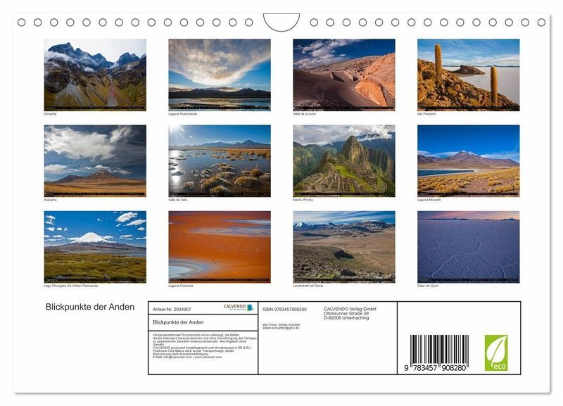 QUALITÄT - Hochwertiger Fotokalender mit 12 wunderschönen Motiven auf lichtbeständigem Bilderdruckpapier, robuste Spiralbindung mit Aufhängebügel.NACHHALTIG - deutliche Abfallreduzierung durch bedarfsgerechte Einzelstückfertigung, umweltfreundliches FSC-zertifiziertes Papier, Produktion in Deutschland, klimabewusste Logistik.PERFEKTES GESCHENK - Kalender für Freunde und Familie, für Kinder und Erwachsene, jung und alt, zu Weihnachten, Geburtstag oder zwischendurch.VIELFALT - Bildkalender in verschiedenen Formaten, z.B. DIN A5, DIN A4, DIN A3 sowie DIN A2. Ob Naturmotiv, Gemälde oder Fotos, ideal für ein persönliches Wohlfühlambiente.Eine Reise durch das Hochland der Anden von Autor(in): Stefan Schütter