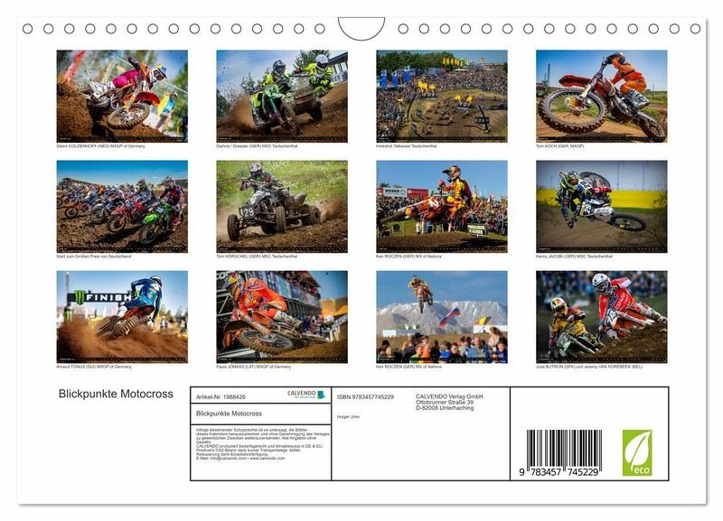 QUALITÄT - Hochwertiger Fotokalender mit 12 wunderschönen Motiven auf lichtbeständigem Bilderdruckpapier, robuste Spiralbindung mit Aufhängebügel.NACHHALTIG - deutliche Abfallreduzierung durch bedarfsgerechte Einzelstückfertigung, umweltfreundliches FSC-zertifiziertes Papier, Produktion in Deutschland, klimabewusste Logistik.PERFEKTES GESCHENK - Kalender für Freunde und Familie, für Kinder und Erwachsene, jung und alt, zu Weihnachten, Geburtstag oder zwischendurch.VIELFALT - Bildkalender in verschiedenen Formaten, z.B. DIN A5, DIN A4, DIN A3 sowie DIN A2. Ob Naturmotiv, Gemälde oder Fotos, ideal für ein persönliches Wohlfühlambiente.Die faszinierende Extremsportart Motocross in all seinen Facetten von Autor(in): Holger John