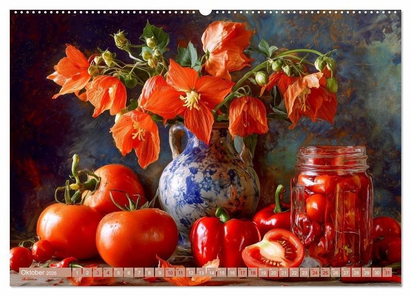 Entdecken Sie die faszinierende Verbindung von Natur und Technologie: Dieser Kalender präsentiert einzigartige Stillleben, die durch KI-generierte Kompositionen aus Blumen, Obst und Gemüse entstehen. Jedes Bild ist ein Fest der Farben und Formen, inspiriert von traditioneller Malerei und moderner Ästhetik. Die Motive vereinen klassische Stilleben-Elemente mit innovativer Bildgestaltung und laden ein, die Schönheit der Natur in neuem Licht zu erleben. Perfekt für Kunstliebhaber, Technologiebegeisterte und alle, die das Besondere schätzen.