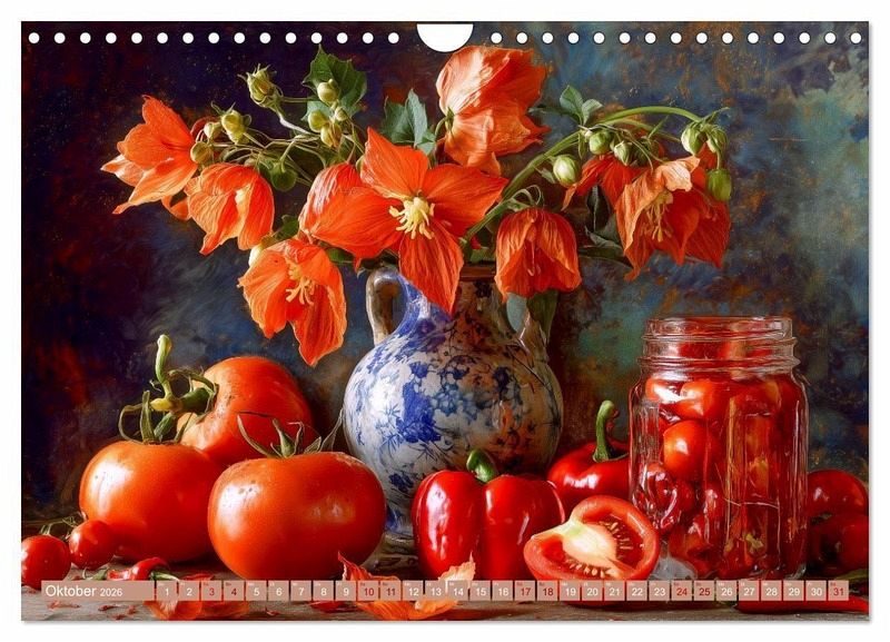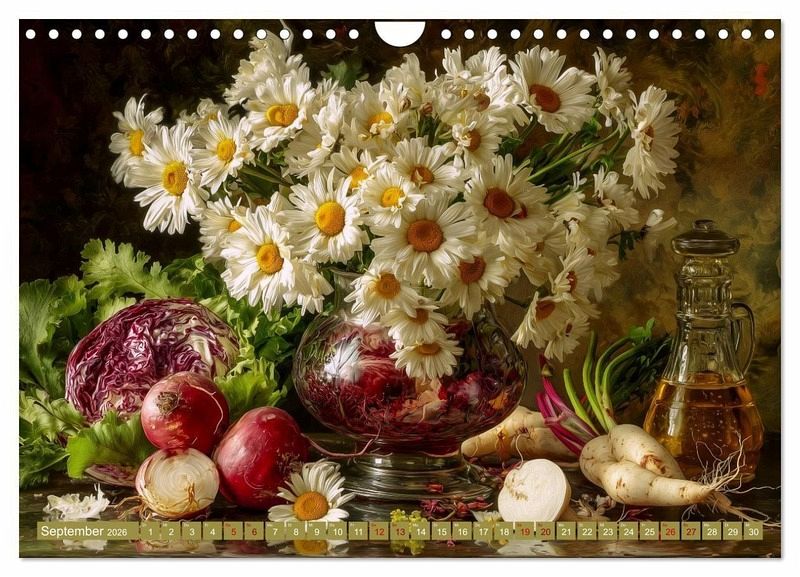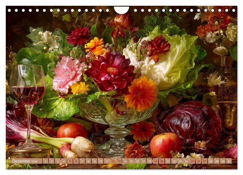 Entdecken Sie die faszinierende Verbindung von Natur und Technologie: Dieser Kalender präsentiert einzigartige Stillleben, die durch KI-generierte Kompositionen aus Blumen, Obst und Gemüse entstehen. Jedes Bild ist ein Fest der Farben und Formen, inspiriert von traditioneller Malerei und moderner Ästhetik. Die Motive vereinen klassische Stilleben-Elemente mit innovativer Bildgestaltung und laden ein, die Schönheit der Natur in neuem Licht zu erleben. Perfekt für Kunstliebhaber, Technologiebegeisterte und alle, die das Besondere schätzen.