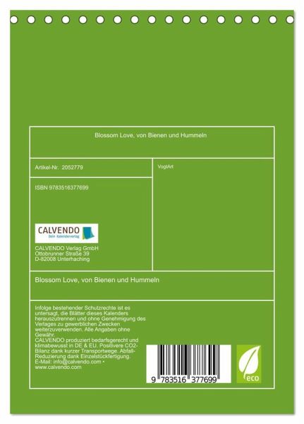 Dieser Kalender ist der ideale Wandschmuck für alle Liebhaber von Bienen, Hummeln und Blüten er ist mit 12 kunstvoll arrangierten Makrofotografien erstellt. Die Fotografien wurden in Deutschland, Österreich und Alaska aufgenommen. Auch als Geschenk eignet sich dieser wunderschöne Kalender hervorragend. In jedem meiner Kalender steckt meine Liebe zur Natur, zum Detail und zu Farbkompositionen.