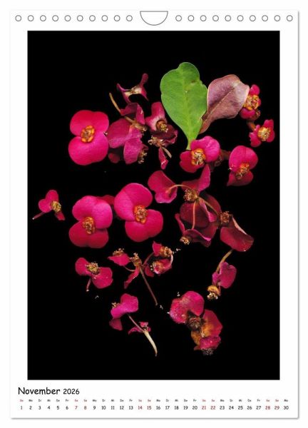 Dieser Kalender besteht aus einer kleinen Auswahl von Photographien, die ohne Kamera entstanden sind. Aufnahmemedium ist ein Flachbettscanner, der dazu dient, die Schönheit und Eleganz von Blüten abzubilden. Textur und Struktur erscheinen in großer Nähe und Direktheit und entfalten so ihre Schönheit. Dass die toxische Potenz eines Wirkstoffes durchaus hübsch verpackt sein kann und gar nicht per se im äußeren Erscheinungsbild erkennbar sein muss, möchte ich mit meiner photographischen Arbeit vorführen.