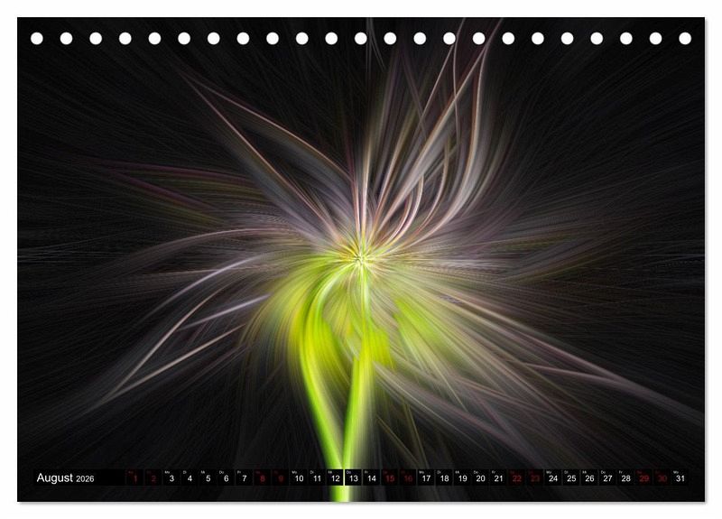 Die zarten Gebilde aus Licht und Farbe lassen eine Blüte erahnen. Erfreuen Sie sich mit diesem außergewöhnlichen Kalender jeden Monat an einer neuen wunderbaren Kreation und lassen Sie Ihrer Fantasie freien Lauf.