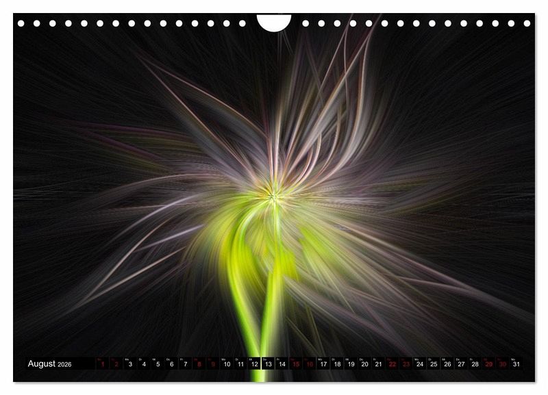 Die zarten Gebilde aus Licht und Farbe lassen eine Blüte erahnen. Erfreuen Sie sich mit diesem außergewöhnlichen Kalender jeden Monat an einer neuen wunderbaren Kreation und lassen Sie Ihrer Fantasie freien Lauf.