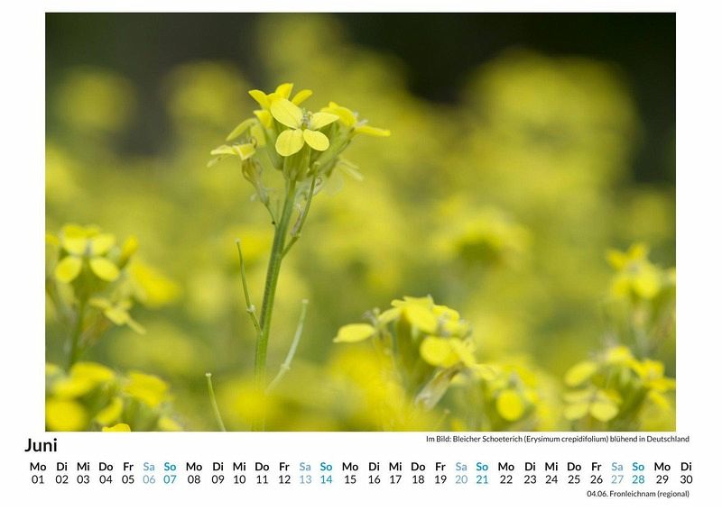 Erleben Sie die atemberaubende Blütenpracht Deutschlands das ganze Jahr über mit unserem hochwertigen Wandkalender! Jede der 12 liebevoll ausgewählten Aufnahmen fängt die Schönheit der heimischen Natur in voller Blüte ein - von zarten Frühlingsblumen bis hin zu farbenfrohen Sommerwiesen. Gedruckt auf lichtbeständigem, FSC-zertifiziertem Bilderdruckpapier, bleibt die Farbenpracht lange erhalten und schont gleichzeitig die Umwelt. Perfekt für Naturfreunde und alle, die sich das ganze Jahr über an der Vielfalt der deutschen Flora erfreuen möchten. Holen Sie sich ein Stück Natur in Ihr Zuhause - ideal auch als Geschenk! Hochwertig Erleben Sie ein Jahr voller Eleganz mit unserem Premium-Fotokalender. Jedes der 12 Motive ist auf hochwertigem, lichtbeständigem Bilderdruckpapier gedruckt, um die Lebendigkeit jedes Bildes zu bewahren. Die robuste Spiralbindung gewährleistet Langlebigkeit und einfache Handhabung. Nachhaltig Unser Engagement für die Umwelt spiegelt sich in jedem Exemplar wider. Durch die Produktion auf Abruf reduzieren wir signifikant unseren Abfall. Wir verwenden ausschließlich umweltfreundliches, FSC-zertifiziertes Papier. Stolz gefertigt in Deutschland, achten wir bei unserer Logistik auf Klimaschutz, um unseren ökologischen Fußabdruck zu minimieren. Das ideale Geschenk Dieser Kalender ist das perfekte Präsent für jeden Anlass - ob Weihnachten, Geburtstage oder einfach als liebevolle Aufmerksamkeit zwischendurch. Geeignet für Freunde, Familie, Kinder und Erwachsene gleichermaßen, bereichert er jedes Zuhause mit seiner Vielfalt und Schönheit, unabhängig vom Alter der Beschenkten.