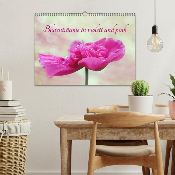 Lassen Sie sich durch die Farbe Lila beruhigen und genießen Sie die mystische Wirkung der violetten Blütenpracht. Die rosafarbenen Blumen werden bei Ihnen romantische und zärtliche Gefühle erwecken. Erfreuen Sie sich ein ganzes Jahr an den feinen Blumenmotiven.