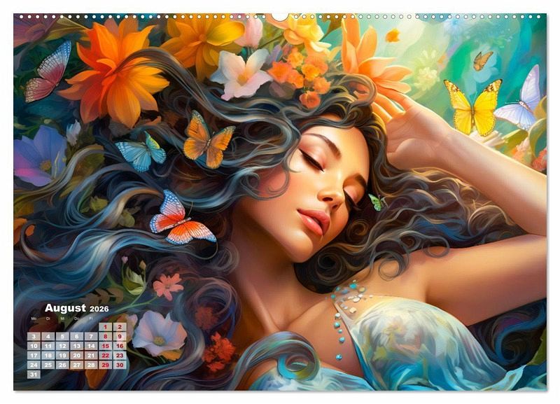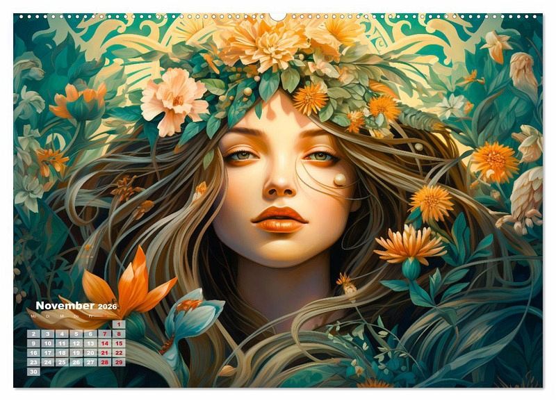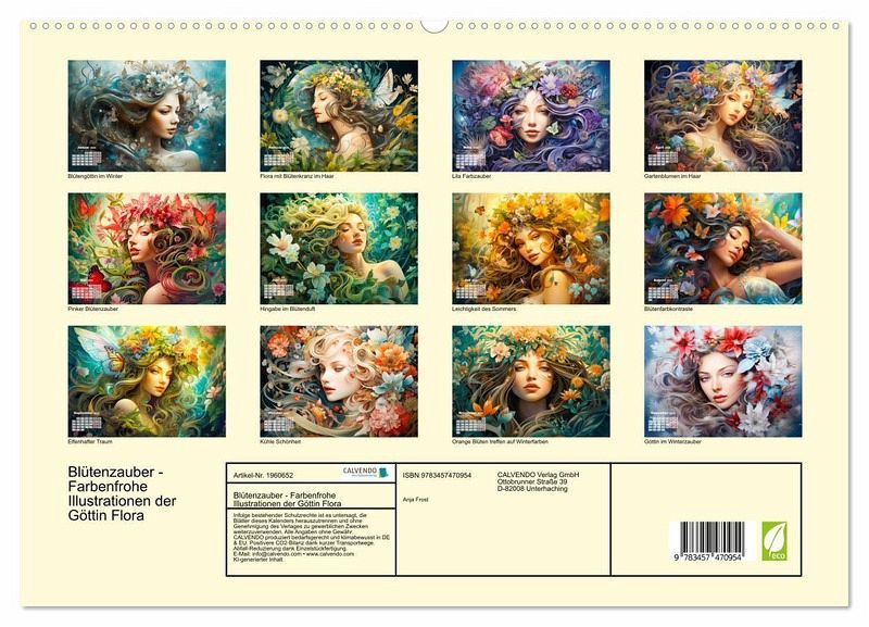 Tauchen Sie ein in die bezaubernde Welt der Blumen und Blüten mit unserem Kalender "Blütenzauber". Jeder Monat offenbart kunstvolle und farbenfrohe KI-generierten Illustrationen, die die Göttin Flora in ihrer vollen Pracht zeigen. Lassen Sie sich von der Schönheit der Blumen verzaubern, während Sie durch das Jahr reisen und die einzigartige Ästhetik der Flora in jedem Detail entdecken. Dieser Kalender ist nicht nur ein praktischer Begleiter, sondern auch ein visuelles Fest für alle Blumenliebhaber und Kunstenthusiasten. Bringen Sie mit "Blütenzauber" die göttliche Schönheit der Flora in Ihr Zuhause.