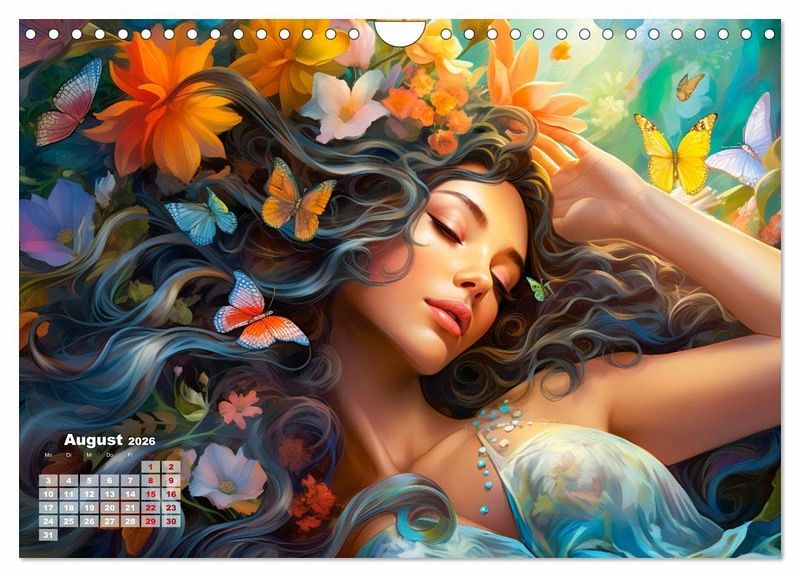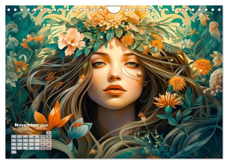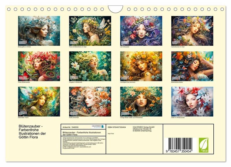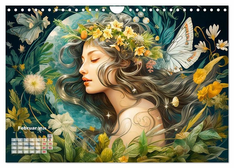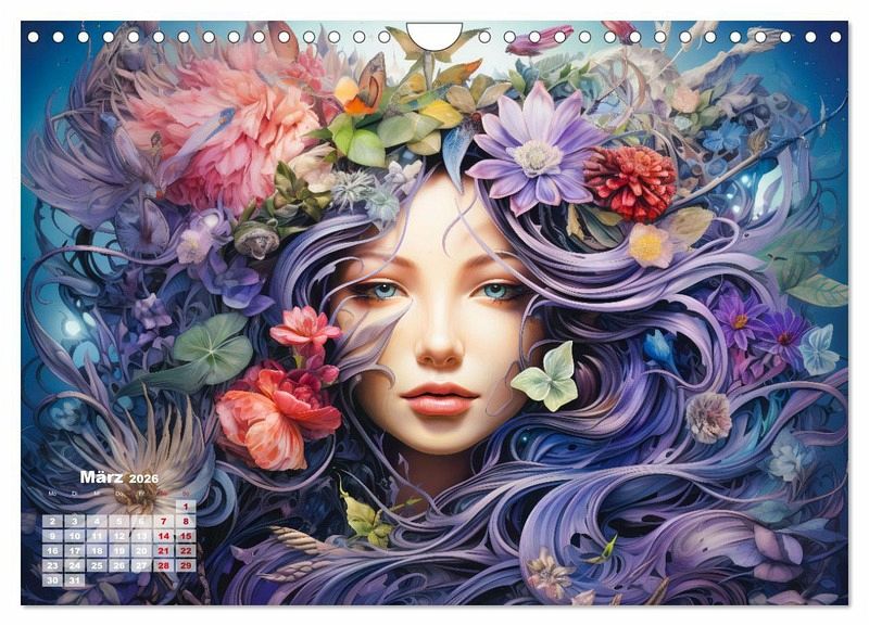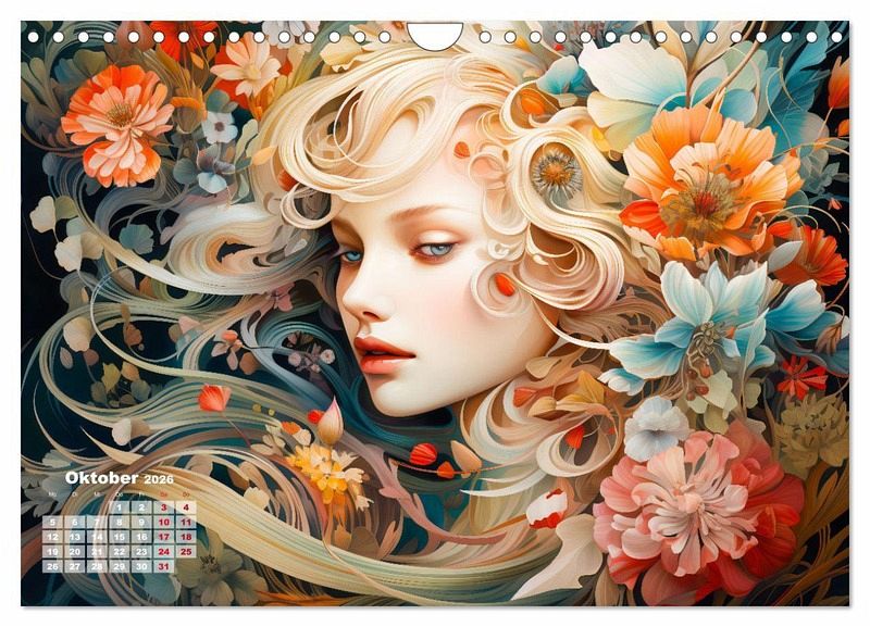 Tauchen Sie ein in die bezaubernde Welt der Blumen und Blüten mit unserem Kalender "Blütenzauber". Jeder Monat offenbart kunstvolle und farbenfrohe KI-generierten Illustrationen, die die Göttin Flora in ihrer vollen Pracht zeigen. Lassen Sie sich von der Schönheit der Blumen verzaubern, während Sie durch das Jahr reisen und die einzigartige Ästhetik der Flora in jedem Detail entdecken. Dieser Kalender ist nicht nur ein praktischer Begleiter, sondern auch ein visuelles Fest für alle Blumenliebhaber und Kunstenthusiasten. Bringen Sie mit "Blütenzauber" die göttliche Schönheit der Flora in Ihr Zuhause.