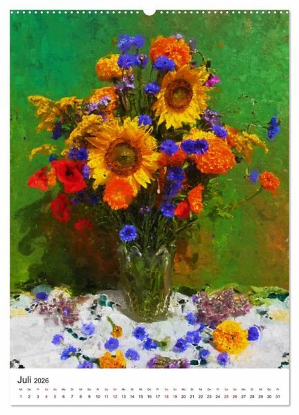 PREMIUM-LINIE - Brillanter Fotokalender mit 12 wunderschönen Motiven, Kunstdruck in Hochglanz in Museumsqualität.QUALITÄT - edle Materialien, stabile Rückwand mit 2 innovativen Einstecktaschen für eine optimale Präsentation an der Wand.NACHHALTIG - deutliche Abfallreduzierung durch bedarfsgerechte Einzelstückfertigung, umweltfreundliches FSC-zertifiziertes Papier, Produktion in Deutschland, klimabewusste Logistik.PERFEKTES GESCHENK - Kalender für Freunde und Familie, für Kinder und Erwachsene, jung und alt, zu Weihnachten, Geburtstag oder zwischendurch.Bunte Blumenstillleben in Acryl gemalt. von Autor(in): Anja Frost