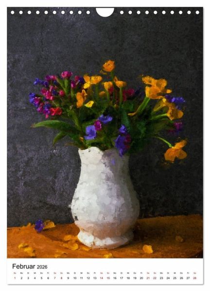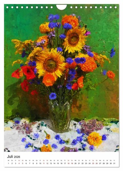 QUALITÄT - Hochwertiger Fotokalender mit 12 wunderschönen Motiven auf lichtbeständigem Bilderdruckpapier, robuste Spiralbindung mit Aufhängebügel.NACHHALTIG - deutliche Abfallreduzierung durch bedarfsgerechte Einzelstückfertigung, umweltfreundliches FSC-zertifiziertes Papier, Produktion in Deutschland, klimabewusste Logistik.PERFEKTES GESCHENK - Kalender für Freunde und Familie, für Kinder und Erwachsene, jung und alt, zu Weihnachten, Geburtstag oder zwischendurch.VIELFALT - Bildkalender in verschiedenen Formaten, z.B. DIN A5, DIN A4, DIN A3 sowie DIN A2. Ob Naturmotiv, Gemälde oder Fotos, ideal für ein persönliches Wohlfühlambiente.Bunte Blumenstillleben in Acryl gemalt. von Autor(in): Anja Frost