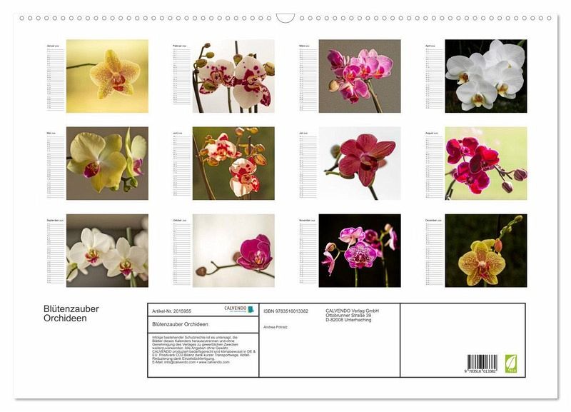 QUALITÄT - Hochwertiger Fotokalender mit 12 wunderschönen Motiven auf lichtbeständigem Bilderdruckpapier, robuste Spiralbindung mit Aufhängebügel.NACHHALTIG - deutliche Abfallreduzierung durch bedarfsgerechte Einzelstückfertigung, umweltfreundliches FSC-zertifiziertes Papier, Produktion in Deutschland, klimabewusste Logistik.PERFEKTES GESCHENK - Kalender für Freunde und Familie, für Kinder und Erwachsene, jung und alt, zu Weihnachten, Geburtstag oder zwischendurch.VIELFALT - Bildkalender in verschiedenen Formaten, z.B. DIN A5, DIN A4, DIN A3 sowie DIN A2. Ob Naturmotiv, Gemälde oder Fotos, ideal für ein persönliches Wohlfühlambiente.Lassen Sie sich von zauberhaften Orchideenblüten durchs Jahr begleiten. von Autor(in): Andrea Potratz.