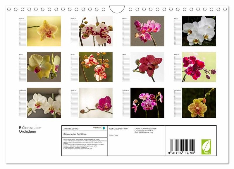 QUALITÄT - Hochwertiger Fotokalender mit 12 wunderschönen Motiven auf lichtbeständigem Bilderdruckpapier, robuste Spiralbindung mit Aufhängebügel.NACHHALTIG - deutliche Abfallreduzierung durch bedarfsgerechte Einzelstückfertigung, umweltfreundliches FSC-zertifiziertes Papier, Produktion in Deutschland, klimabewusste Logistik.PERFEKTES GESCHENK - Kalender für Freunde und Familie, für Kinder und Erwachsene, jung und alt, zu Weihnachten, Geburtstag oder zwischendurch.VIELFALT - Bildkalender in verschiedenen Formaten, z.B. DIN A5, DIN A4, DIN A3 sowie DIN A2. Ob Naturmotiv, Gemälde oder Fotos, ideal für ein persönliches Wohlfühlambiente.Lassen Sie sich von zauberhaften Orchideenblüten durchs Jahr begleiten. von Autor(in): Andrea Potratz.
