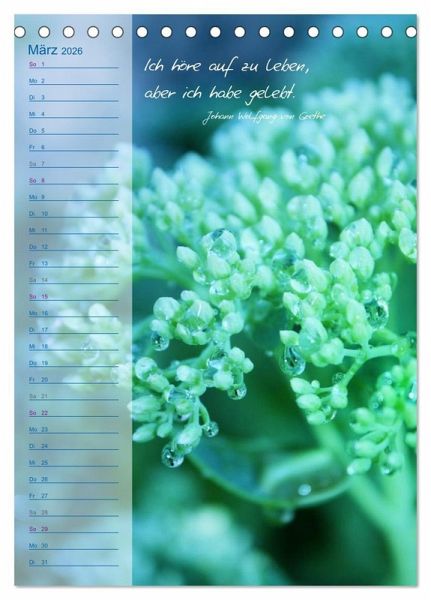 QUALITÄT - Hochwertiger Fotokalender mit 12 wunderschönen Motiven auf lichtbeständigem Bilderdruckpapier, robuste Spiralbindung.NACHHALTIG - deutliche Abfallreduzierung durch bedarfsgerechte Einzelstückfertigung, umweltfreundliches FSC-zertifiziertes Papier, Produktion in Deutschland, klimabewusste Logistik.PERFEKTES GESCHENK - Kalender für Freunde und Familie, für Kinder und Erwachsene, jung und alt, zu Weihnachten, Geburtstag oder zwischendurch.VIELFALT - Bildkalender in verschiedenen Formaten, z.B. DIN A5, DIN A4, DIN A3 sowie DIN A2. Ob Naturmotiv, Gemälde oder Fotos, ideal für ein persönliches Wohlfühlambiente.Geburtstagskalender mit Blumenfotografien und Zitaten von Johann Wolfgang von Goethe von Autor(in): Christine Bässler