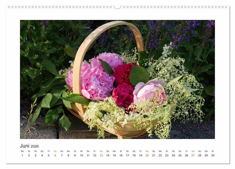 Juni: Pfingstrosen, Rosen und Holunder im Spankorb