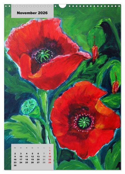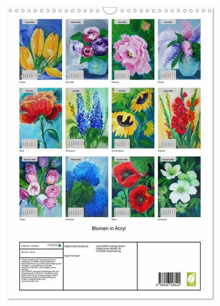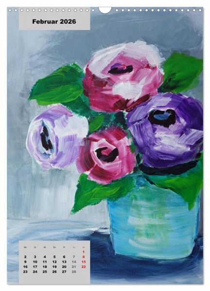 Ein Kunstkalender mit Blumengemälde von Sigrid Harmgart in leuchtenden Acrylfarben. In jedem Monat verzaubert Sie eine neue farbenprächtige Blüte.