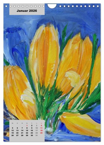 Ein Kunstkalender mit Blumengemälde von Sigrid Harmgart in leuchtenden Acrylfarben. In jedem Monat verzaubert Sie eine neue farbenprächtige Blüte.