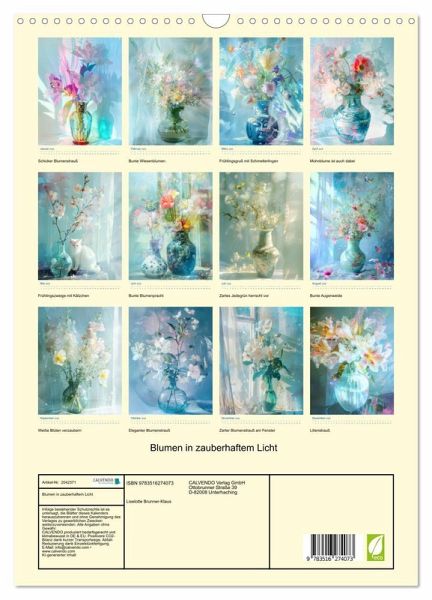 QUALITÄT - Hochwertiger Fotokalender mit 12 wunderschönen Motiven auf lichtbeständigem Bilderdruckpapier, robuste Spiralbindung mit Aufhängebügel.NACHHALTIG - deutliche Abfallreduzierung durch bedarfsgerechte Einzelstückfertigung, umweltfreundliches FSC-zertifiziertes Papier, Produktion in Deutschland, klimabewusste Logistik.PERFEKTES GESCHENK - Kalender für Freunde und Familie, für Kinder und Erwachsene, jung und alt, zu Weihnachten, Geburtstag oder zwischendurch.VIELFALT - Bildkalender in verschiedenen Formaten, z.B. DINA5, DIN A4, DIN A3 sowie DIN A2. Ob Naturmotiv, Gemälde oder Fotos, ideal für ein persönliches Wohlfühlambiente.Blumige Frühlingsgrüße voller Pracht von Autor(in): Liselotte Brunner-Klaus