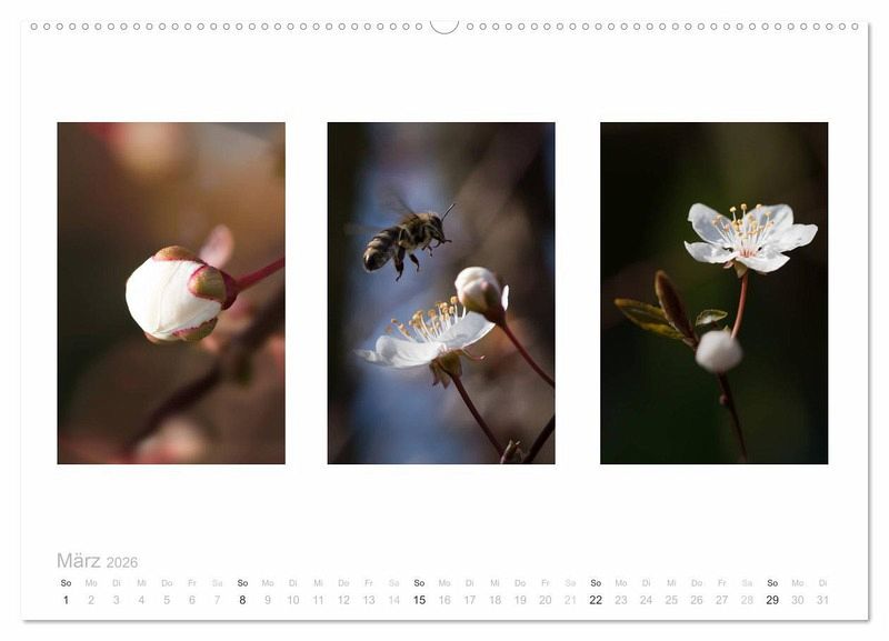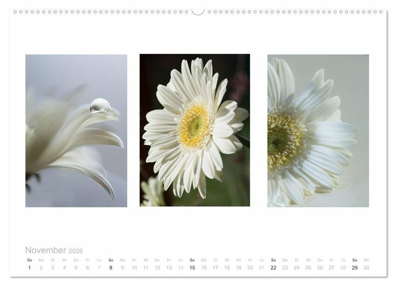 Jeden Monat drei Bilder der selben Blüte. Abwechslungsreich und ganz besonders, ist dieser außergewöhnlich schöne Blumenkalender. Die Bilder sind auch nach Ablauf des Jahres ohne Kalendarium ein idealer Schmuck für jede Wand.